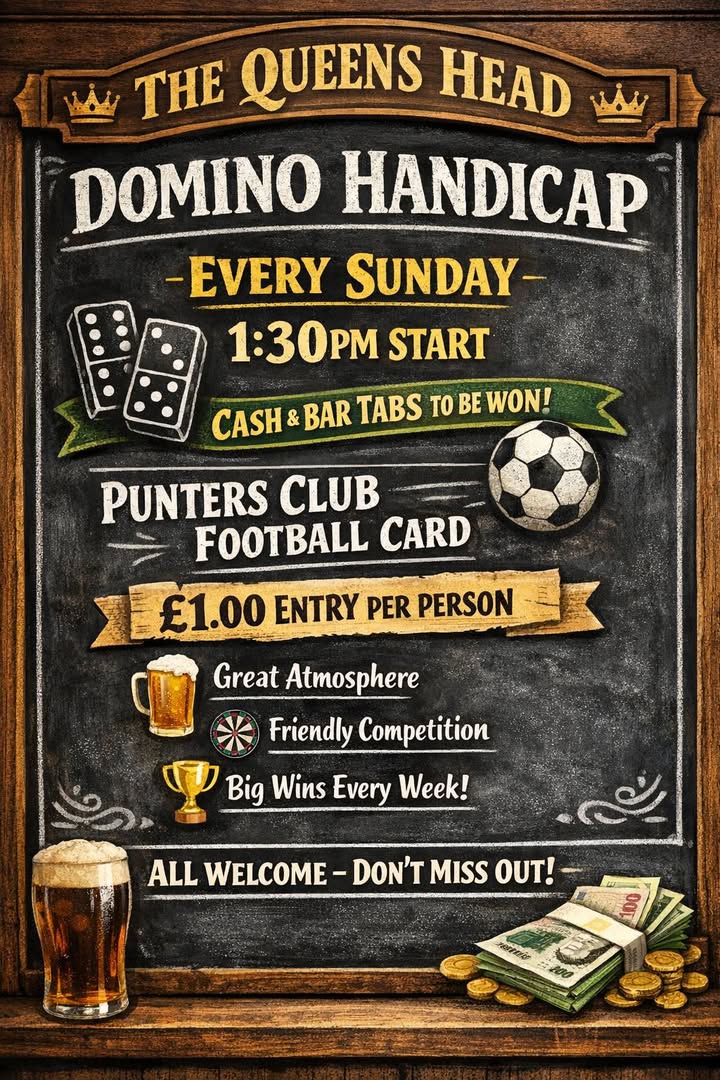 Happy Easter from the team at The Queens Head! 🐣✨ Join us for a full day of live sport on our big screens — horse racing, snooker, and both the Women’s & Men’s FA Cup. Plus live music: • 3:30 PM — Jessica Grace • 6:00 PM — Northern Descent Family-friendly fun with treats for the kids around the venue, and amazing bar deals for the adults. Come celebrate with us! 📍 The Queens Head ⏰ From midday — see you there! #Easter #LiveMusic #LiveSport #TheQueensHead